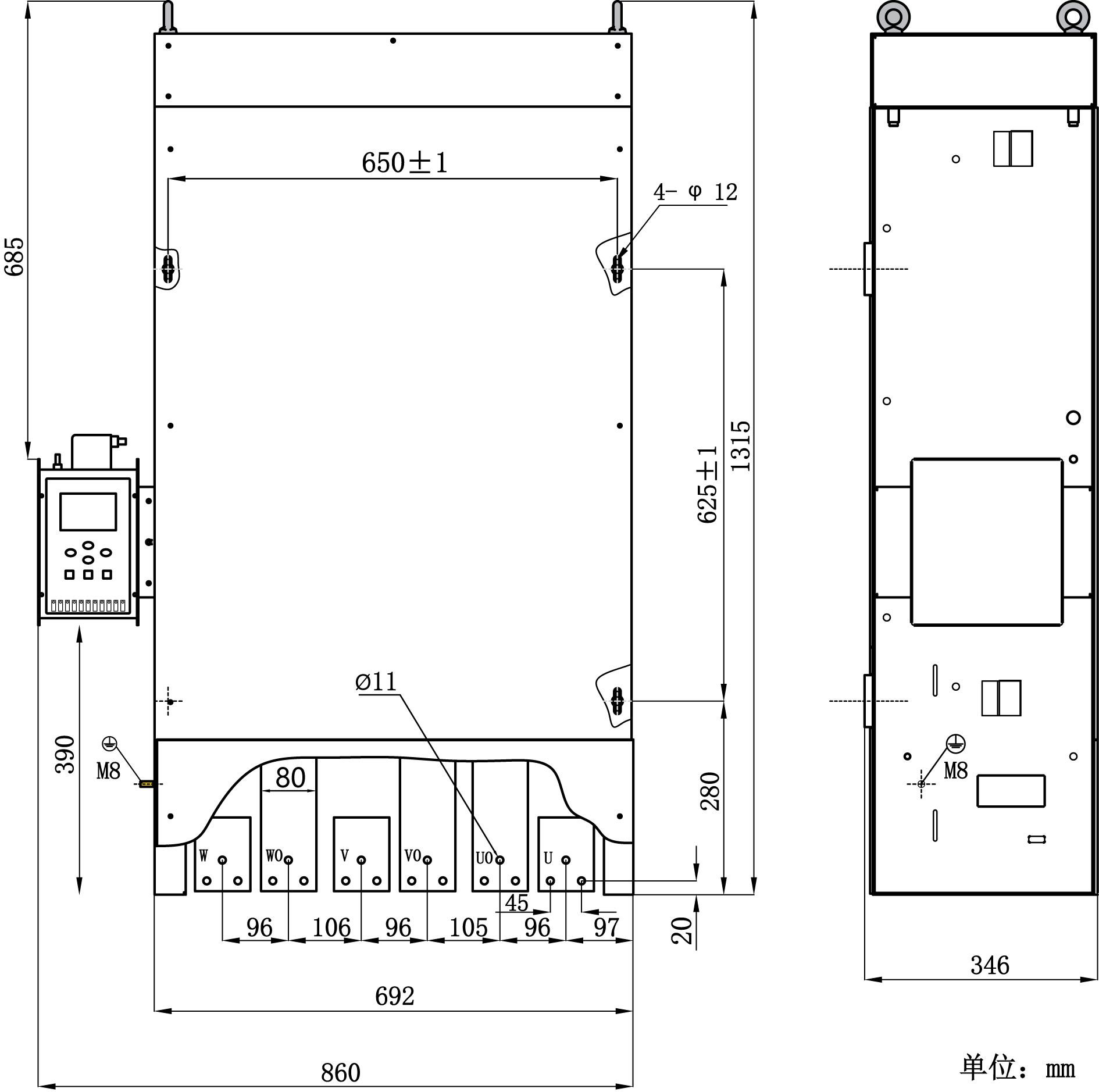 ● 控制單元防護等級:IP41。